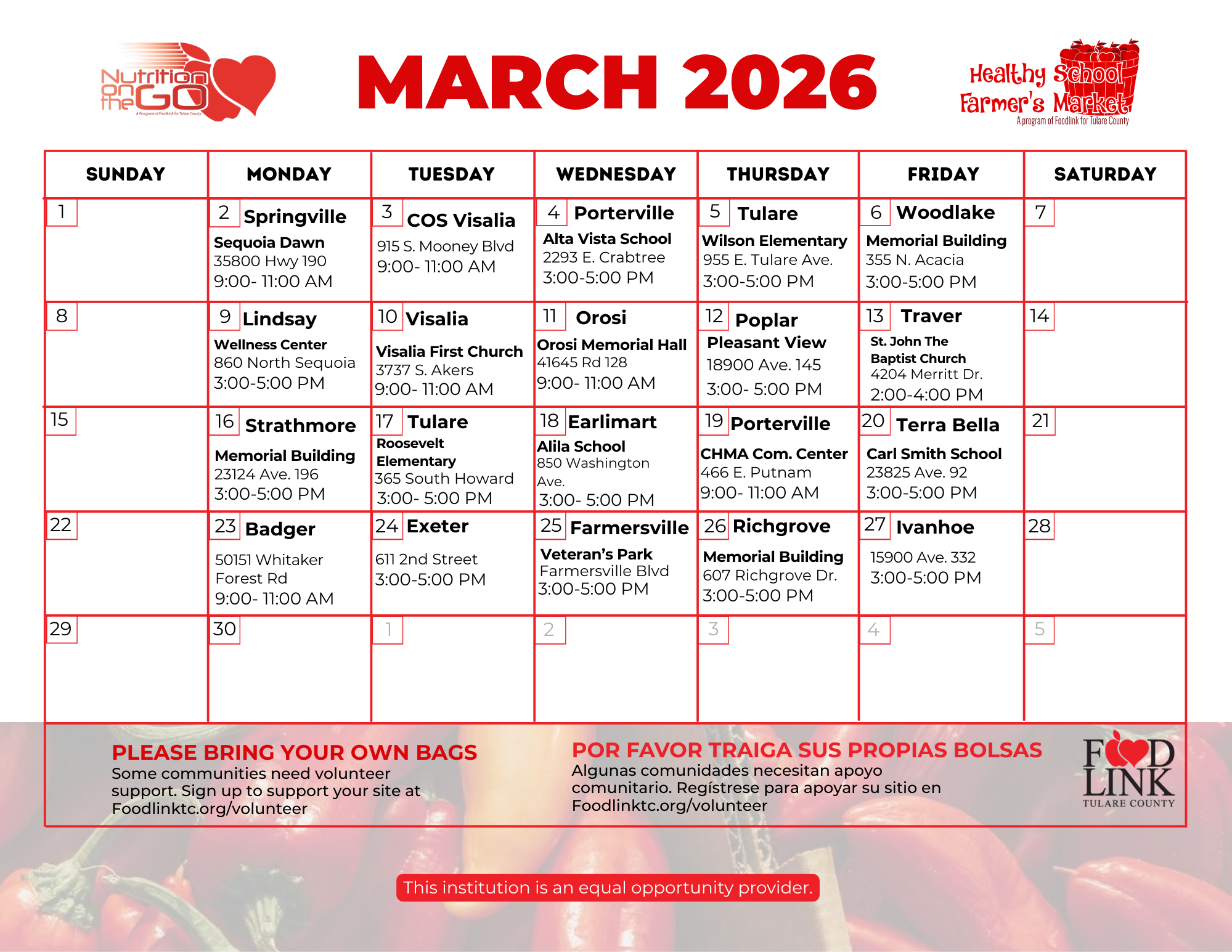 Most distributions are now walk-in farmer’s market style. We do not have the volunteers or staff capacity to pack boxes and load cars. Thanks for your understanding.