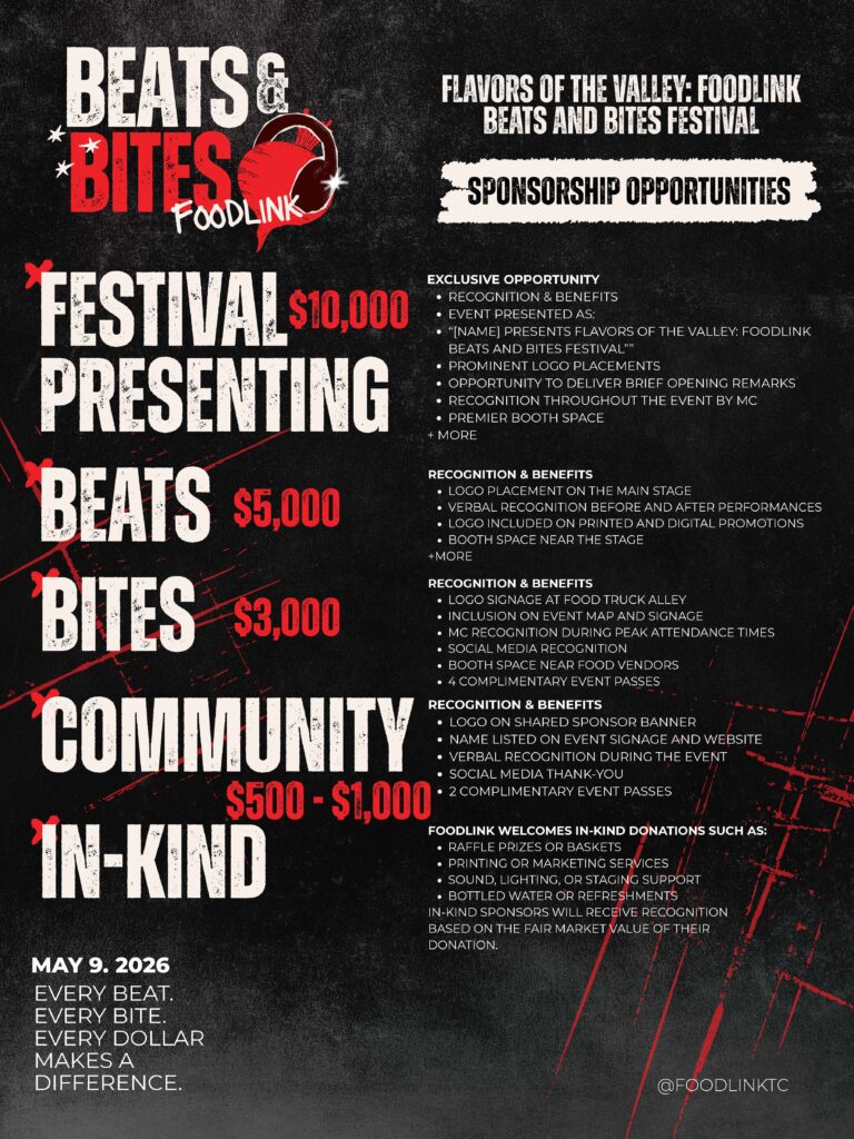 Join us on Saturday, May 9, 2026 for Beats & Bites — Foodlink’s live music and food truck festival bringing the community together for an unforgettable evening of sound, flavor, and impact.